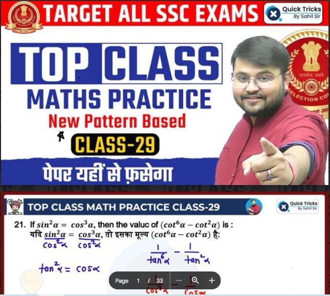 Complete maths practice set for free download class wise for all ssc exams. Here is the complete practice set of maths added for all ssc exams. Class wise PDF is given in this PDF. Here the complete pdf of class 29 to class 34 is attached. This PDF is very useful for SSC Exams.