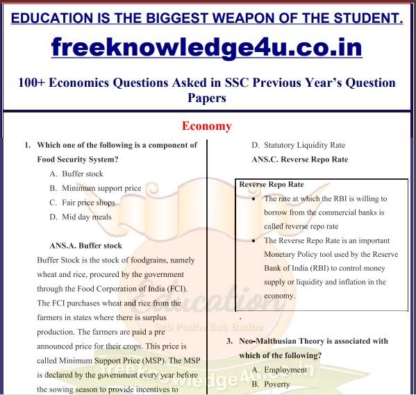 100+ Economics Questions Asked in SSC Previous Year’s Question Papers. This PDF is Very Important PDF For SSC Student. Added Most Previous Question For SSC In This PDF.