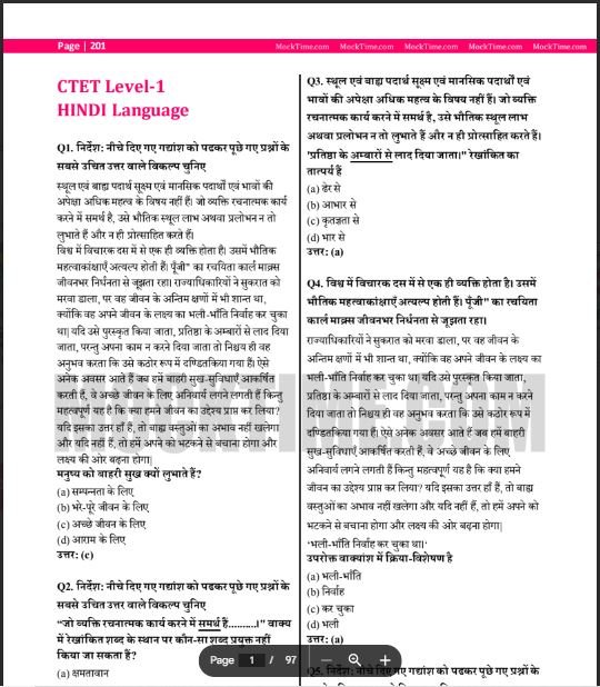 If you are preparing for the Central Teacher Eligibility Test (CTET) and looking for a comprehensive resource to practice Hindi language questions, you’ve come to the right place. In this article, we will provide you with a valuable resource in the form of an important Hindi Language MCQ PDF that you can download for free. This PDF contains a collection of multiple-choice questions (MCQs) that will help you enhance your understanding of the Hindi language and effectively prepare for the CTET examination.