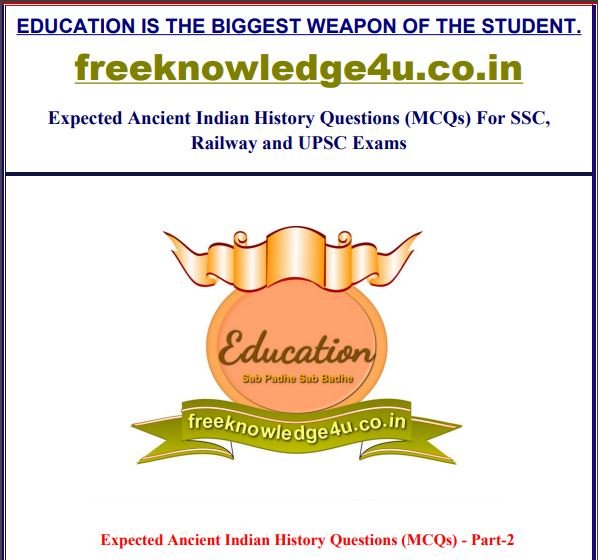 Download Important Ancient Indian History Questions (MCQs) PDF for SSC, Railway & UPSC Exams for free. Most popular question of Indian History is added in this Pdf. More related PDF is attached here. This PDF is very helpful for SSC, UPSC, Railway & Other Competitive Exams.