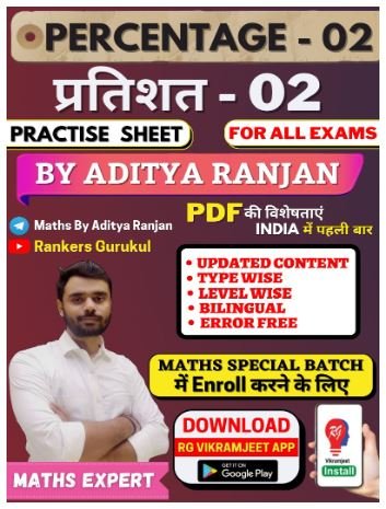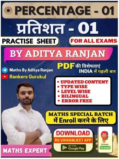 Free Download Percentage Practice Papers published by Aditya Ranjan Sir. This is the best pdf of percentage chapters of maths. Most of the percentage chapters of competitive exams are covered in this chapter. Like SSC, SSC MTS, SSC CGL, SSC GD, UPSC, and more competitive exams. आदित्य रंजन सर द्वारा प्रकाशित प्रतिशत अभ्यास पेपर मुफ्त डाउनलोड करें। यह गणित के प्रतिशत अध्यायों का सबसे अच्छा पीडीएफ है। प्रतियोगी परीक्षाओं के अधिकांश प्रतिशत अध्याय इस अध्याय में शामिल हैं। एसएससी, एसएससी एमटीएस, एसएससी सीजीएल, एसएससी जीडी, यूपीएससी, और अधिक प्रतिस्पर्धी परीक्षाओं की तरह।