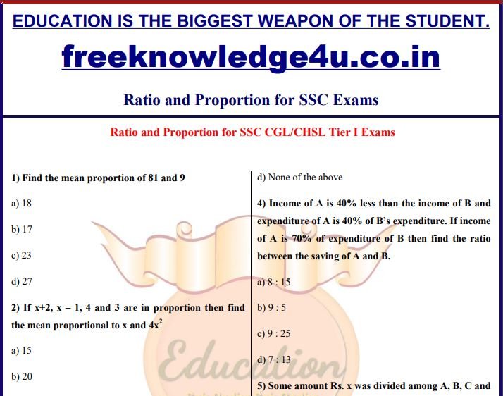 Simple interest and Compound interest and ratio. Download Free PDF of Time and Work for SSC CGL/CHSL/CPO Tier-I Level Exams. Simple interest and Compound interest and ratio is an important topic of mathematics. Simple interest and Compound interest and ratio questions are always asked in all competitive exams. Here the question of maximum Simple interest and Compound interest and ratio is added. This PDF is very useful for all Indian competitive exams.