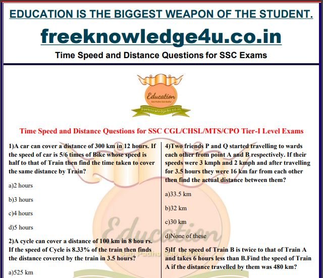 Time Speed and Distance Questions for SSC Exams
